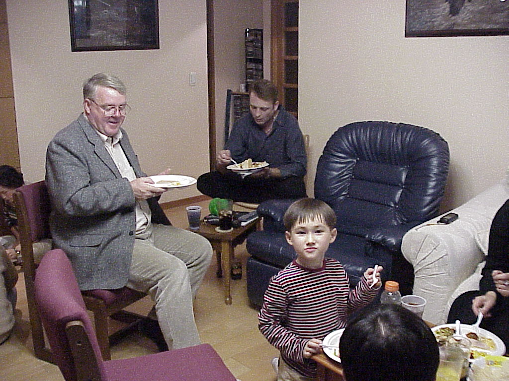 Krysta Gnidziejko, Chris, and Friend, our apartment, Uijongbu S. Korea, January 2001 |